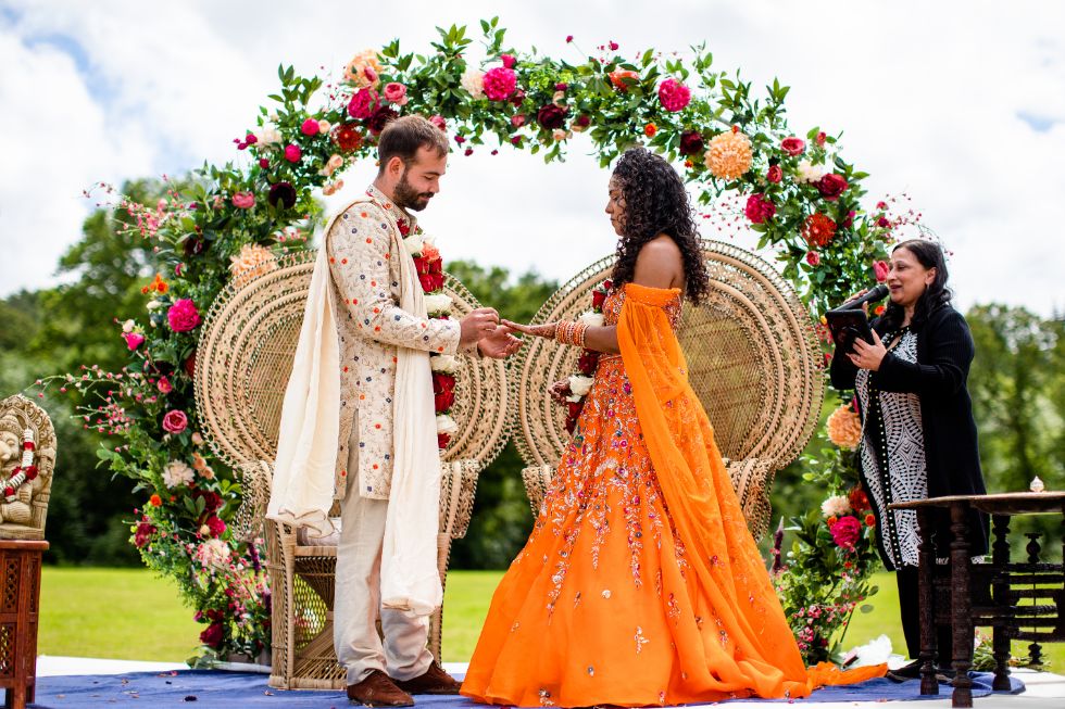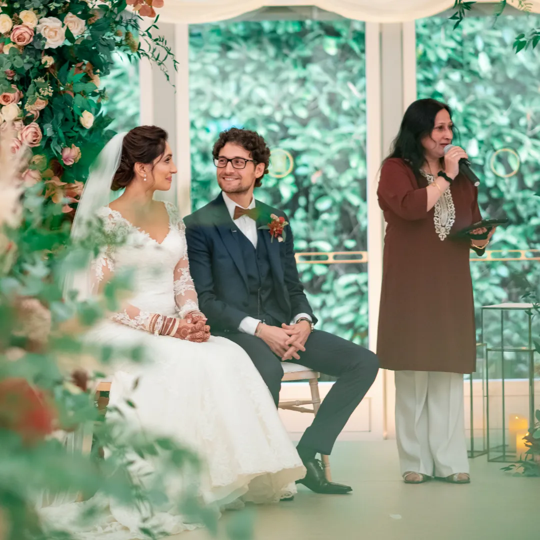 Working with Sonal on our wedding ceremony was easy from start to finish, even with Covid constantly looming over our heads! With three date changes, one only a few weeks before the next, Sonal was happy and flexible throughout. Sonal made us feel looked after, with consistent updates and reminders and created the perfect ceremony, which not only my husband and I loved, but also our guests! It was unique to us with a blend of cultures; she had listened to everything we wanted, and it was truly perfect! Thank you, Sonal!!