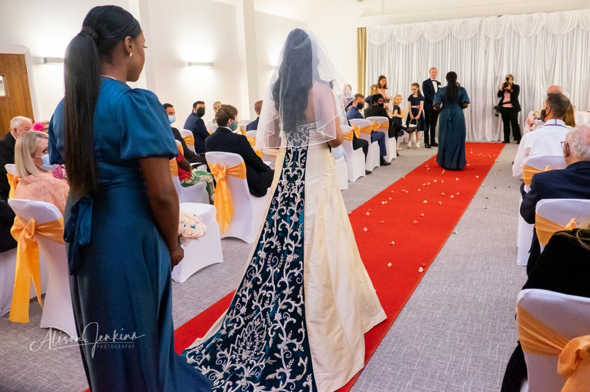 After my welcome to all, the ceremony started traditionally with Ben waiting at the front for Priya. The bridal entrance included the Bridesmaids, Ben’s Nieces, and then Priya.